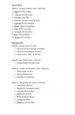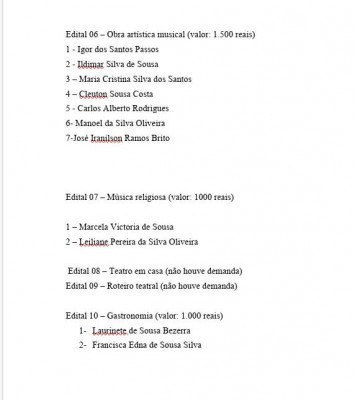 A Prefeita de São João do Sóter, por meio da Secretaria Municipal da Cultura, publicou o resultado da premiação da Lei Aldir Blanc no município. A Lei de Emergência Cultural Aldir Blanc contempla a premiação de Projetos Artísticos e Culturais de conteúdos virtuais tais como: shows, apresentações artístico-culturais, tutoriais, vídeo aulas, esquetes, demonstrações e saraus.