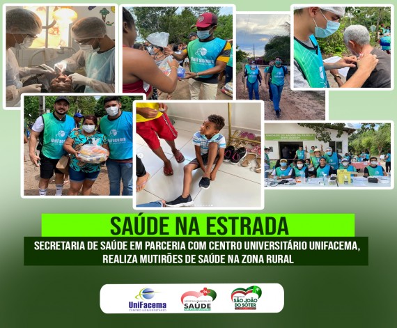 Saúde SAÚDE: Prefeitura em parceria com Centro Universitário UniFacema levam saúde e bem-estar a comunidades quilombolas sotenses. Publicada em 07/06/2022 13:38:15