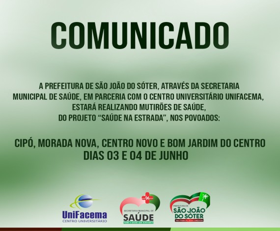Saúde Secretaria de Saúde em parceria com Centro Universitário UniFacema, realiza mutirões de saúde na zona Rural Publicada em 02/06/2022 11:20:43